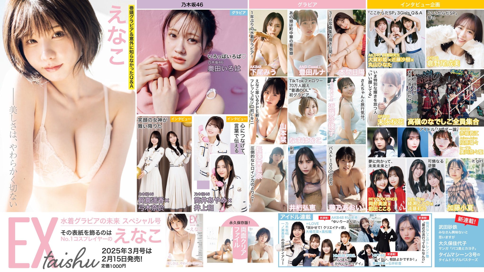 本日2月15日(土)発売の「EX大衆 2025年 3月号」に、乃木坂46 奥田いろはさんのグラビアと弓木奈於さん&賀喜遥香さん、筒井あやめさん&井上和さんのインタビューが掲載されています。