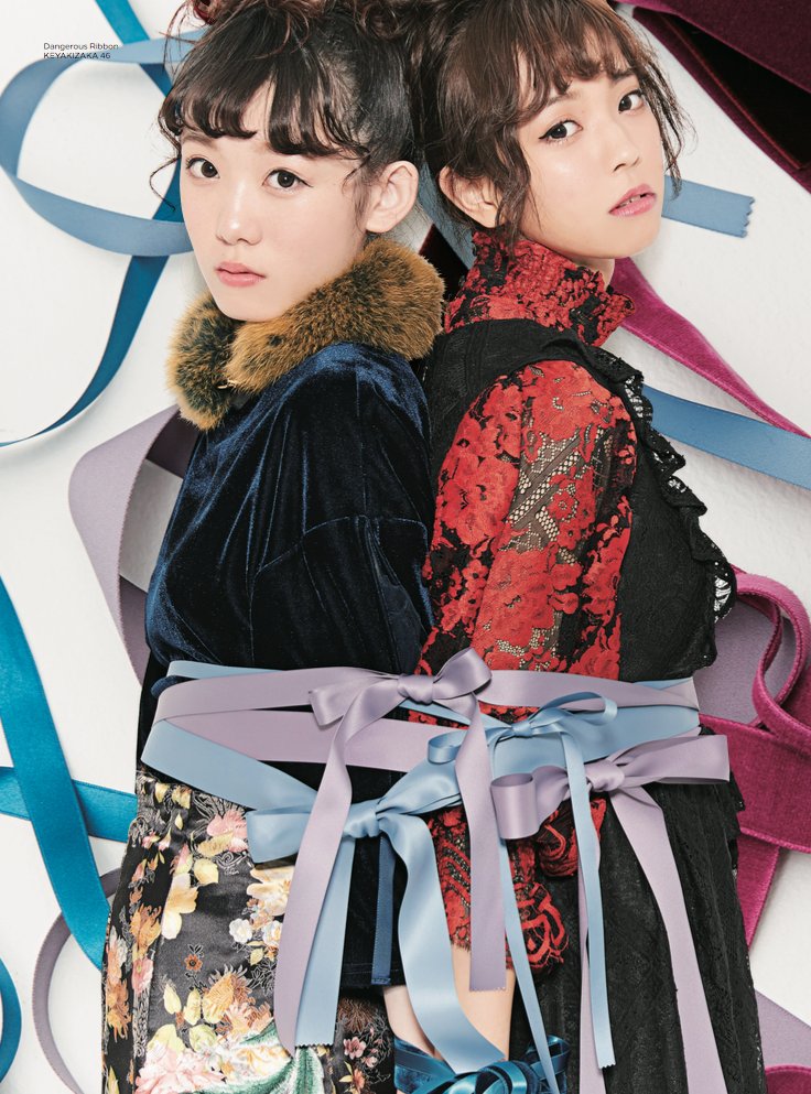 鈴本美愉は、昼から夜にかけての時間軸を追ったファッションストーリー。小林由依、小池美波は、甘いモチーフの象徴、リボンで遊んだファッションヴィジュアル。