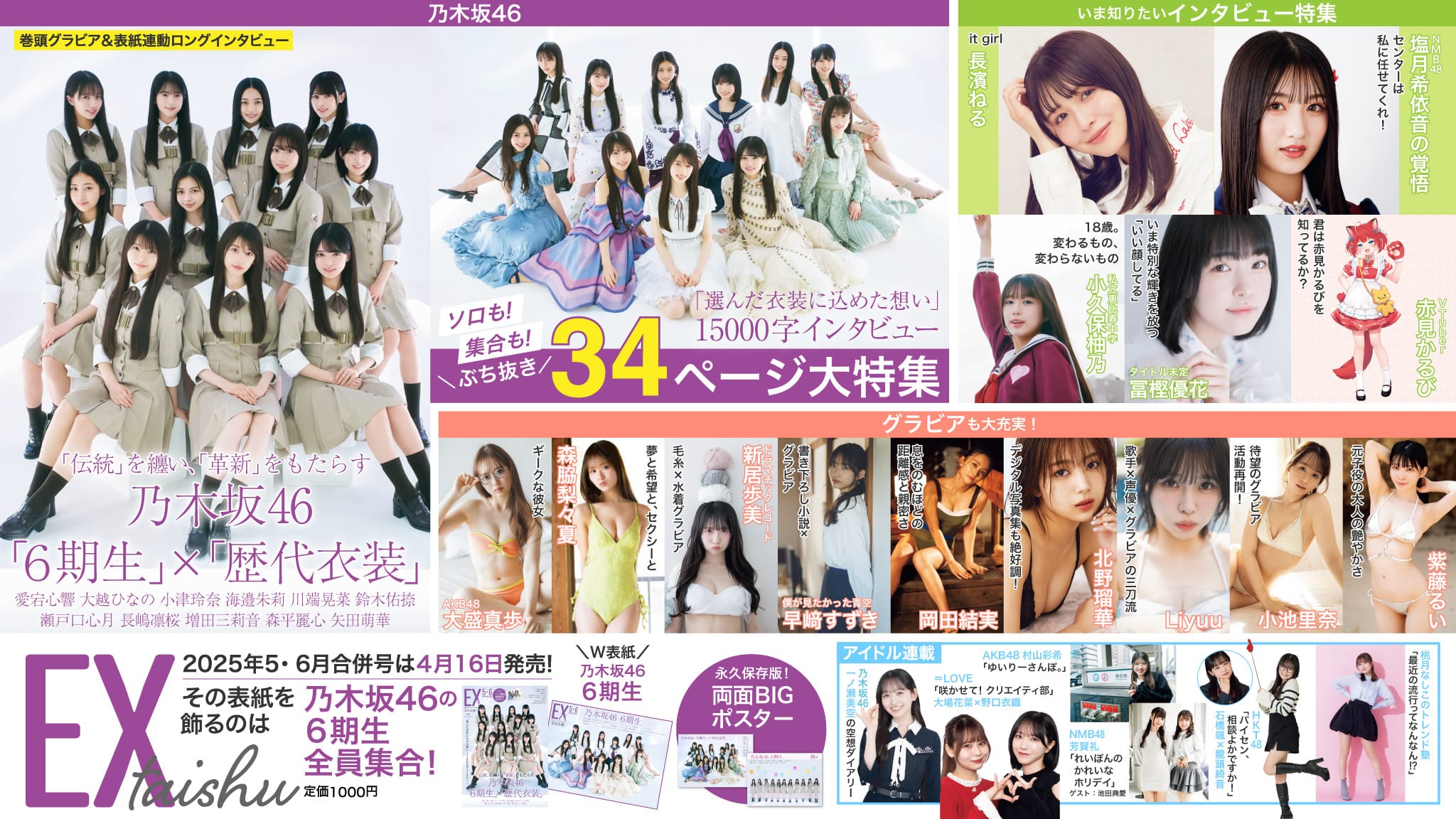 本日4月16日(水)発売の「EX大衆 2025年 5・6月 合併号」の表紙&巻頭大特集は乃木坂46 6期生です。