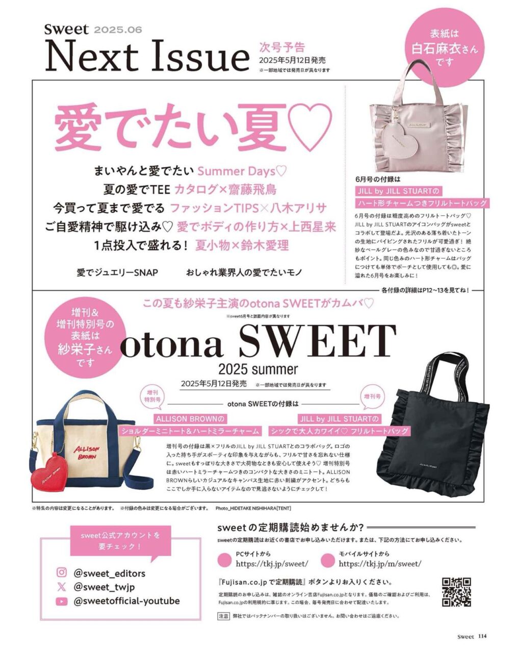 5月12日(月)発売の「sweet 2025年 6月号」通常版の表紙は白石麻衣さんです。