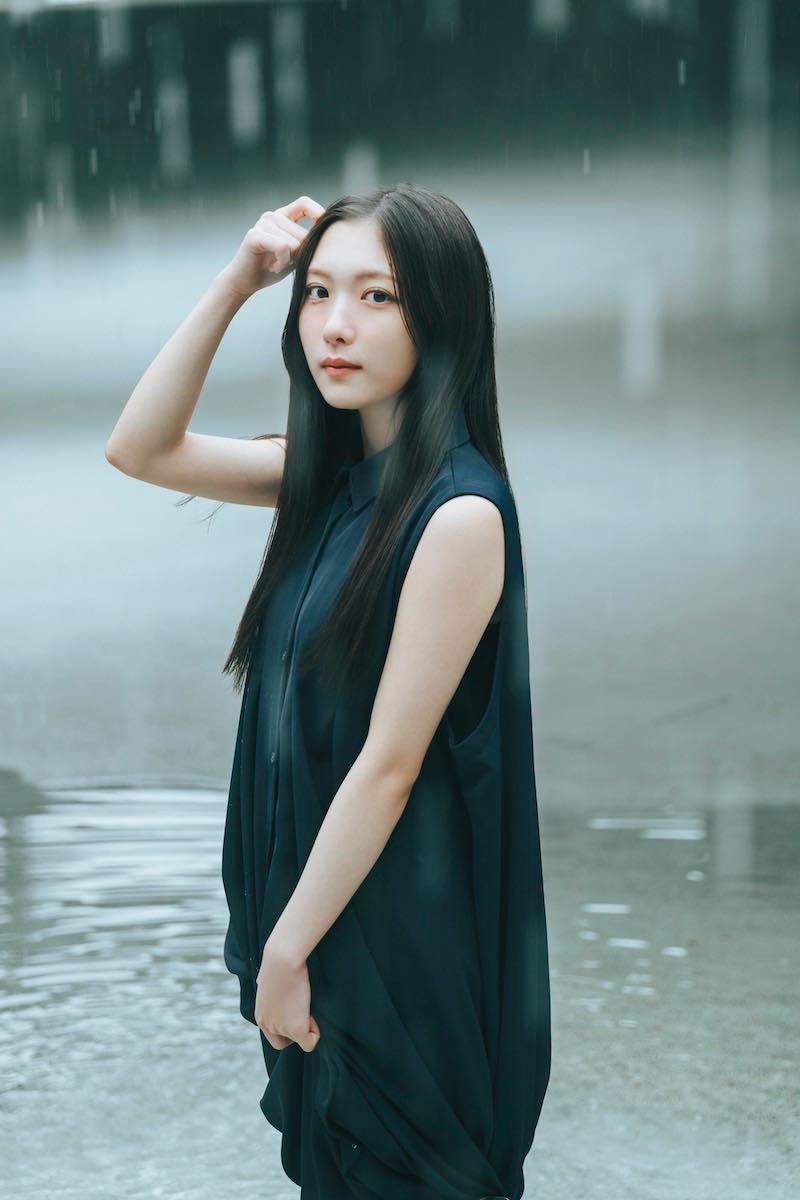 撮影では谷口の圧倒的な存在感と美しさにフォーカス。真っ白な空間に雨が降り注ぐ幻想的な雰囲気の中、ノースリーブのワンピースを着た谷口の白い素肌はより一層透明感が増しており、そこに佇む彼女の機微を丁寧に切り取っている。一方、学校の桜並木や校舎での撮影では、雨を気にせず歩き回って桜の花びらで遊んでみたり、カメラを気にせずにスタッフと朗らかに談笑してみたりする中で、少し幼さが残る愛らしい表情も見せてくれた。