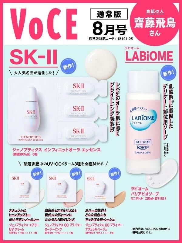 2025年6月11日(水) リリース齋藤飛鳥 齋藤飛鳥が表紙に登場!「VOCE 2025年 8月号」6/20発売! ポストする シェアする LINEで送る 6月20日(金)発売の「VOCE(ヴォーチェ) 2025年 8月号」通常版の表紙は齋藤飛鳥さんです。 Amazonで見る 表紙が公開され次第、改めてお知らせします。 その他アイドル掲載誌の新着情報はアイドル雑誌情報Zでチェック! 関連リンク VOCE(ヴォーチェ)|美容メディア『VOCE』公式サイト VOCE(ヴォーチェ)公式(@iVoCE) – X 齋藤飛鳥(@asuka.3110.official) – Instagram VOCE 2025年 8月号 発売日:2025年6月20日(金) 公式サイト X 齋藤飛鳥 Amazon セブンネット 楽天ブックス Yahoo!ショッピング 齋藤飛鳥 ポストする シェアする LINEで送る