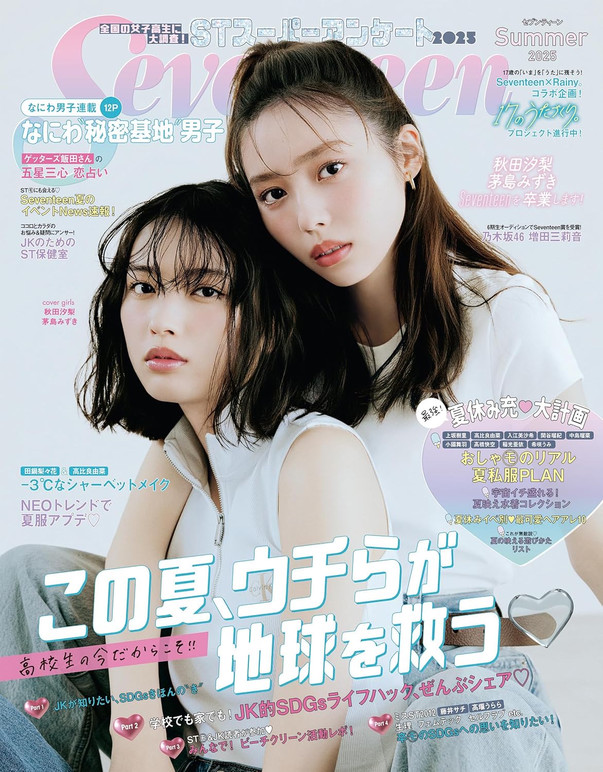 2025年7月1日(火) リリースピックアップ乃木坂46増田三莉音 乃木坂46 増田三莉音が登場!「セブンティーン 2024年 秋・冬号」本日7/1発売! ポストする シェアする LINEで送る 本日7月1日(火)発売の「セブンティーン 2024年 秋・冬号」に、乃木坂46 6期生オーディションでSeventeen賞を受賞した増田三莉音さんが登場しています。 Amazonで見る Kindle版(電子書籍) その他アイドル掲載誌の新着情報はアイドル雑誌情報Zでチェック! 関連リンク Seventeen-Web Seventeen/セブンティーン(@SeventeenJP_mag) – X Seventeen/ST channel – YouTube 乃木坂46公式サイト 乃木坂46(@nogizaka46) – X 乃木坂46(@nogizaka46_official) – TikTok 乃木坂46 – YouTube 乃木坂配信中 – YouTube セブンティーン 2025年 夏号 発売日:2025年7月1日(火) 公式アプリ X 乃木坂46 増田三莉音 Amazon セブンネット 楽天ブックス タワーレコード 週刊少年チャンピオン 2025年 No.30 発売日:2025年6月26日(木) 公式サイト X 乃木坂46 増田三莉音 Kindle セブンネット 楽天市場 乃木坂46増田三莉音 ポストする シェアする LINEで送る