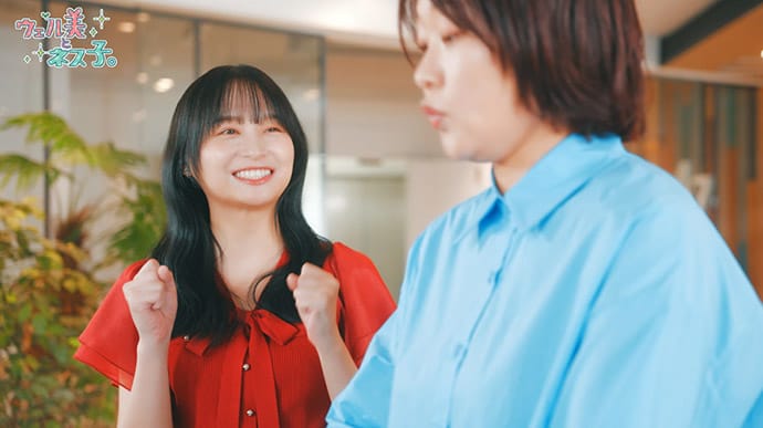 ウェルネス情報を仕入れるのが大好きなウェルネスオタク女子・「ウェル美」 とウェル美の情報をいつも疑ってかかる疑り深い系女子・「ネス子」 が繰り広げるウェルネス情報満載のワンシチュエーションショートドラマ ウェル美:明るく前向き。ウェルネス情報に目がない健康オタク ネス子:物事を斜めに見るやさぐれ女子。ウェルネス知識に疎く、いろいろウェル美に教えてもらい、少しずつウェルネスに興味をもっていく