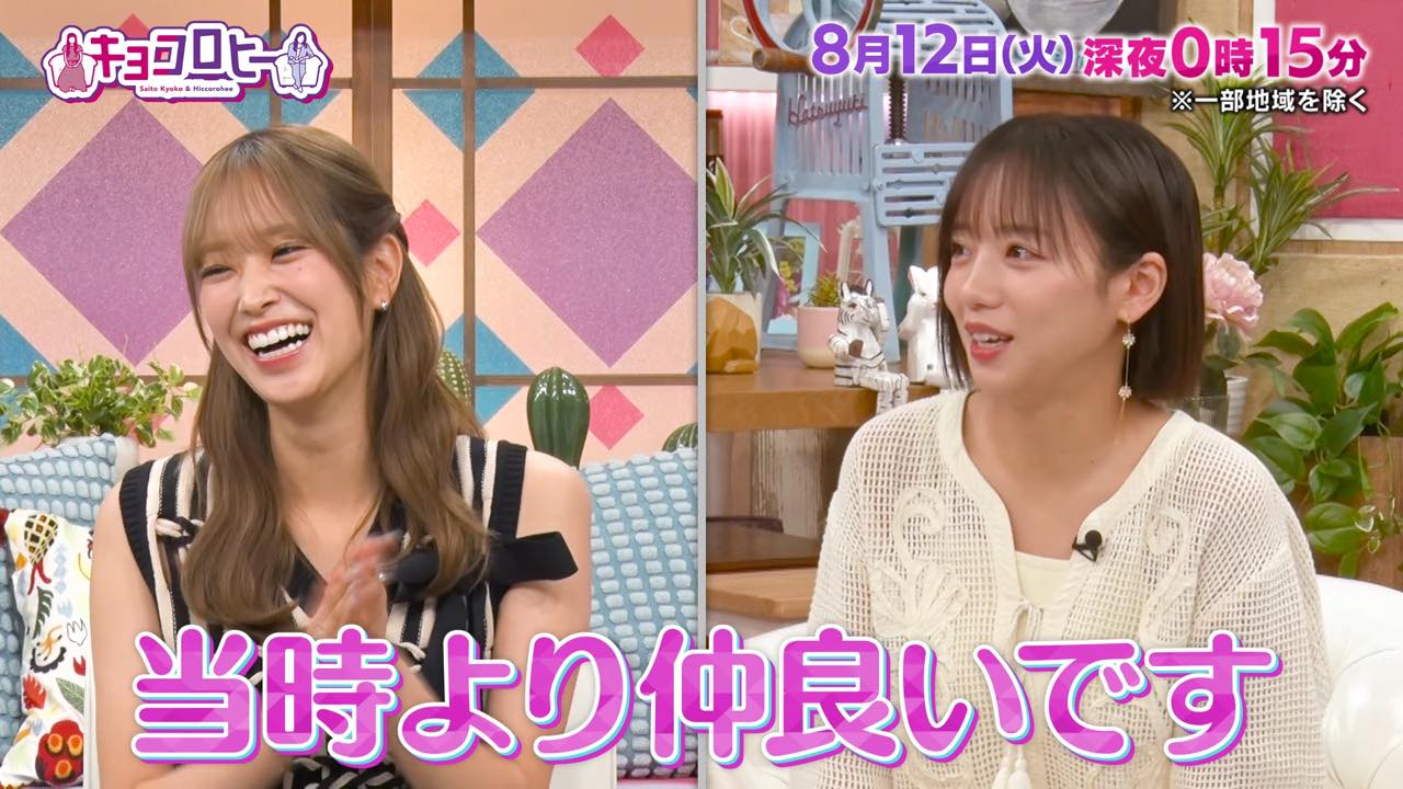 本日8月12日(火)24:15よりテレビ朝日にて、齊藤京子さんとヒコロヒーさんのトークバラエティー「キョコロヒー」が放送されます。