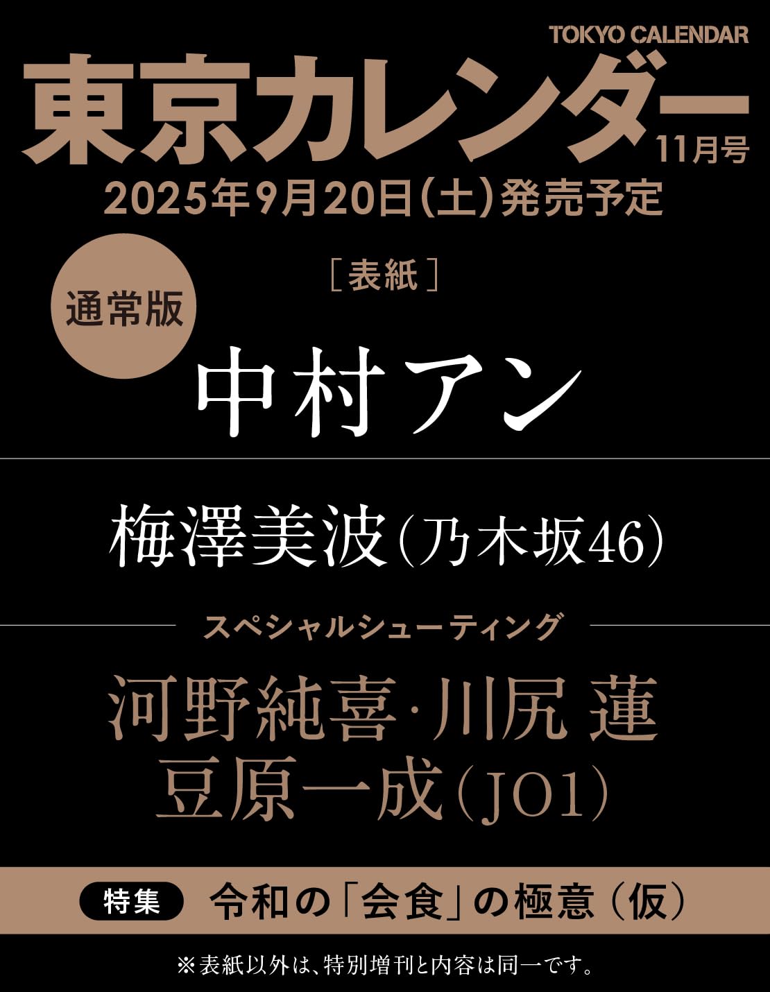9月20日(土)発売の「東京カレンダー 2025年 11月号」に乃木坂46 梅澤美波さんが登場しています。