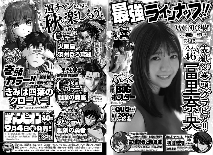 9月4日(木)発売の「週刊少年チャンピオン 2025年 No.40」の表紙&巻頭グラビアは乃木坂46 冨里奈央さんです。