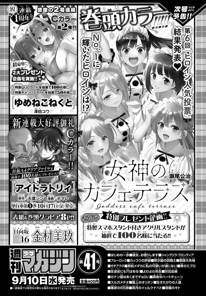 2025年9月5日(金) リリースピックアップ日向坂46金村美玖 日向坂46 金村美玖、表紙&巻頭グラビア!「週刊少年マガジン 2025年 No.41」9/10発売! ポストする シェアする LINEで送る 9月10日(水)発売の「週刊少年マガジン 2025年 No.41」の表紙&巻頭グラビアは日向坂46 金村美玖さんです。 Amazonで見る セブンネットで見る その他アイドル掲載誌の新着情報はアイドル雑誌情報Zでチェック! リンク 週刊少年マガジン 公式サイト 週刊少年マガジン公式(@shonenmagazine1) – X 週刊少年マガジン公式(@shonenmagazine.kousiki) – Instagram 日向坂46公式サイト 日向坂46(@hinatazaka46) – X 日向坂46 – YouTube 日向坂ちゃんねる – YouTube 週刊少年マガジン 2025年 No.41 発売日:2025年9月10日(水) 公式サイト X 日向坂46 金村美玖 Amazon セブンネット 楽天市場 Yahoo!ショッピング 日向坂46 15thシングル「お願いバッハ!」 発売日:2025年9月17日(水) 公式サイト X 日向坂46 Amazon セブンネット 楽天ブックス タワーレコード 日向坂46金村美玖 ポストする シェアする LINEで送る