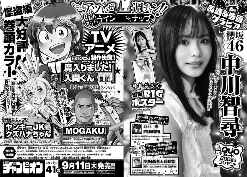 9月11日(木)発売の「週刊少年チャンピオン 2025年 No.41」の表紙&巻頭グラビアは櫻坂46 中川智尋さんです。