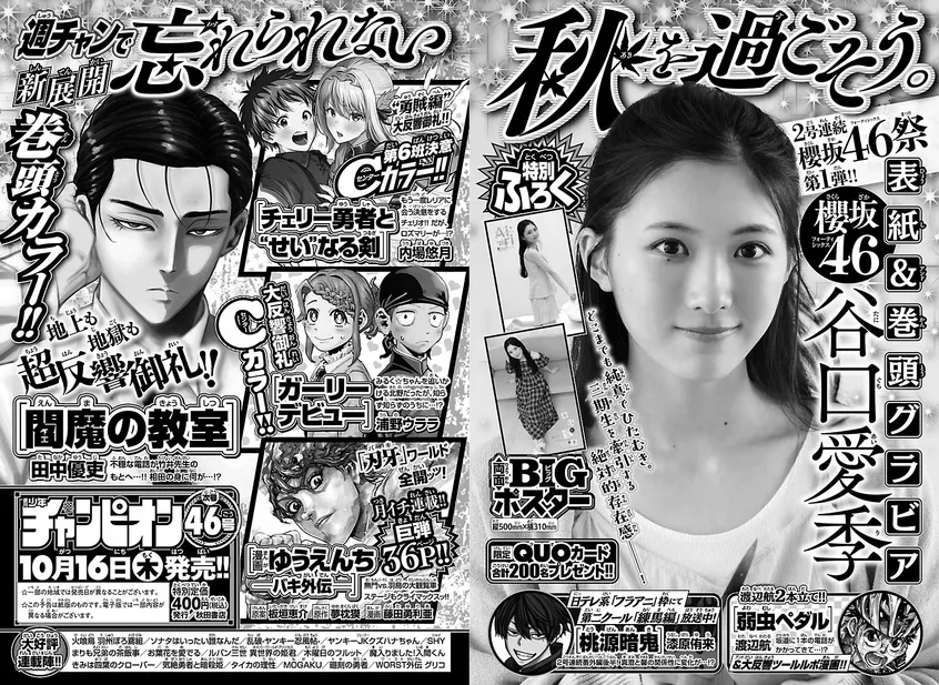 来週10月16日(木)発売の「週刊少年チャンピオン 2025年 No.46」の表紙&巻頭グラビアは櫻坂46 谷口愛季さんです。
