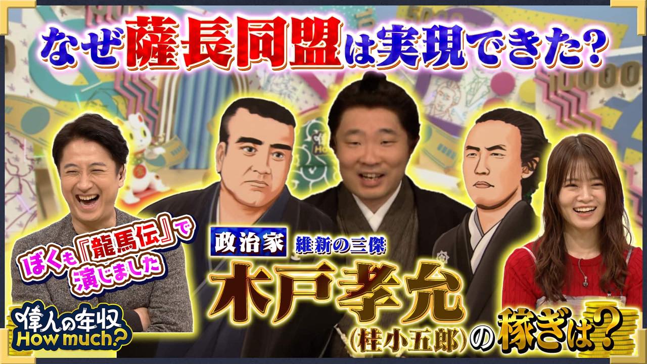 西郷隆盛、大久保利通と並ぶ「維新の三傑」、長州藩の木戸孝允。桂小五郎の名で、江戸へ剣術修行。ペリー来航に衝撃を受け、西洋の技術に目覚め、藩の枠を超えて変革を志す。「逃げの小五郎」とも言われるが、実際に何をやっていたのか?坂本龍馬、西郷隆盛、京都の芸妓・幾松らとの関係を今野浩喜が熱演。大河「龍馬伝」で桂小五郎を演じた谷原章介は何を思う?山崎怜奈の突っ込みは?明治以降の活躍も含め木戸孝允の素顔に迫る!