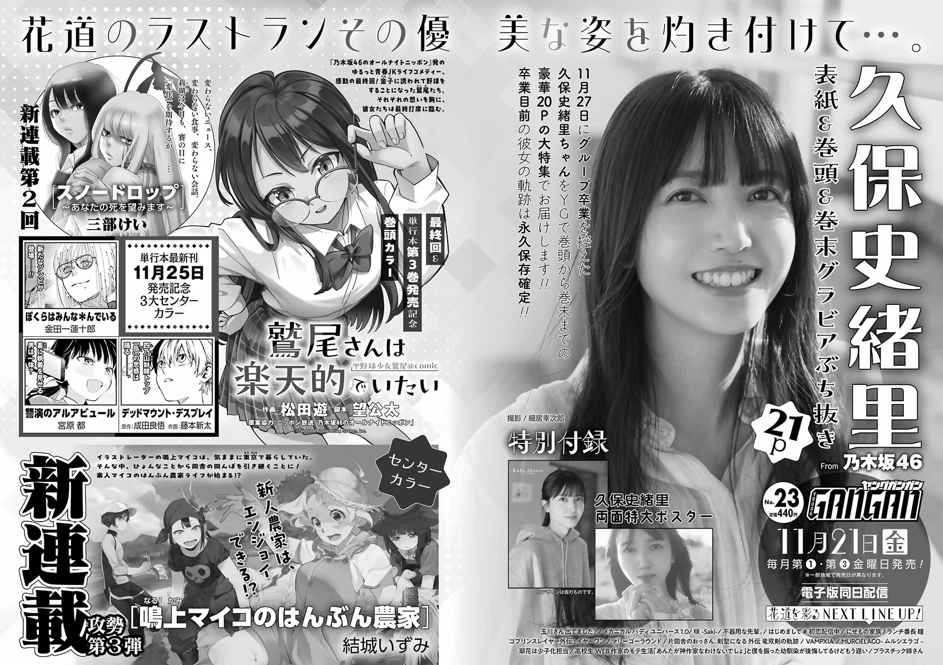 11月21日(金)発売の「ヤングガンガン 2025年 No.23」の表紙&巻頭&巻末グラビアは乃木坂46 久保史緒里さんです。