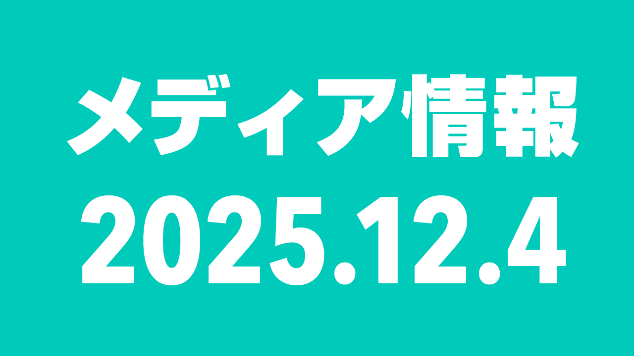 本日12月4日(木)の乃木坂46、櫻坂46、日向坂46、卒業メンバーのメディア出演情報です。