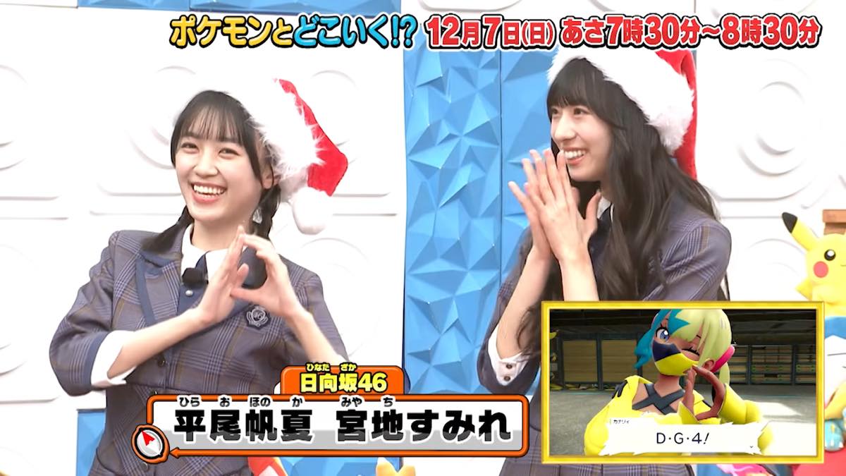 本日12月7日(日)朝7:30放送のテレビ東京「ポケモンとどこいく!?」に、日向坂46の平尾帆夏さんと宮地すみれさんがゲスト出演します。
