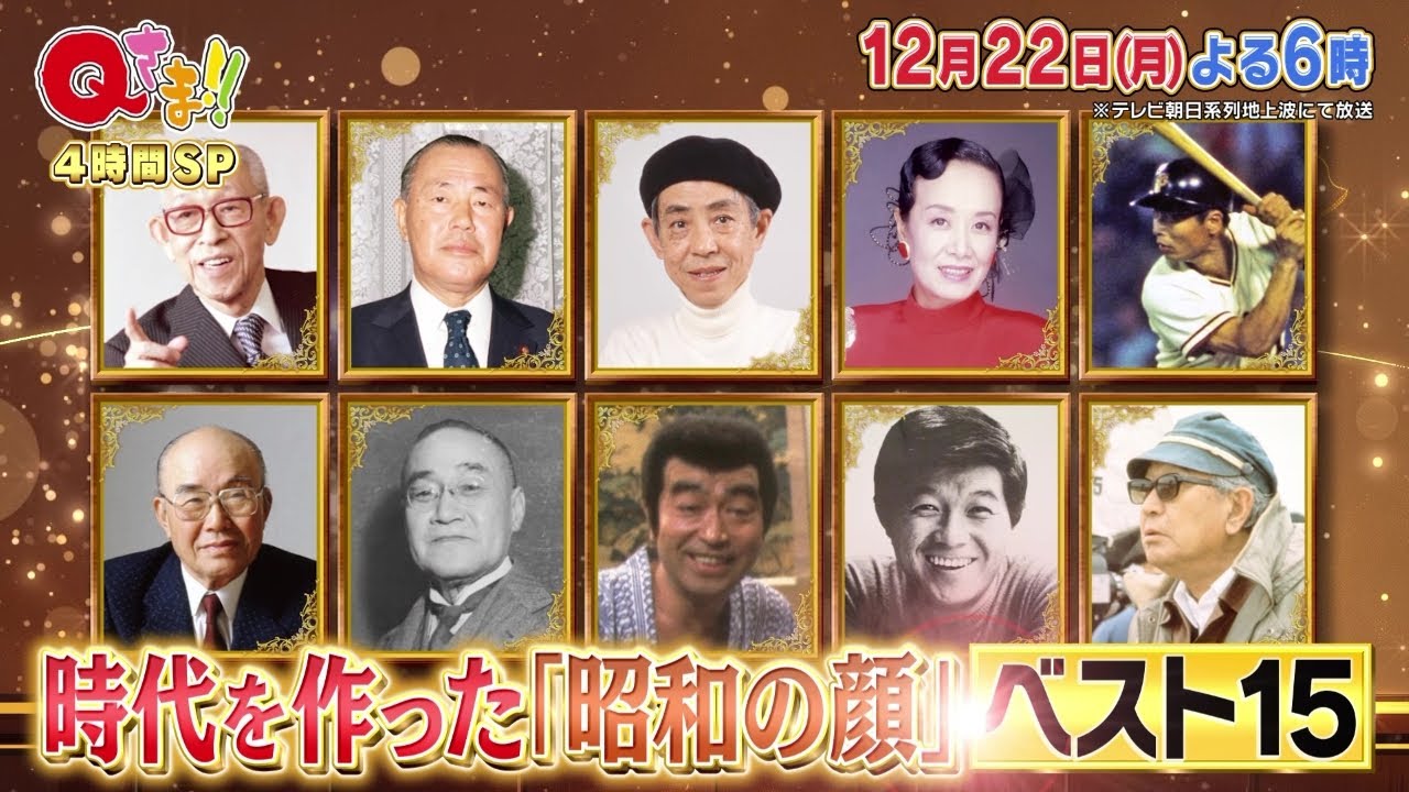 今夜のQさま!!は…昭和100年総決算!国民5万人が選ぶ!時代を作った「昭和の顔」ランキングBEST15!プレッシャーSTUDYも復活!豪華4時間SP