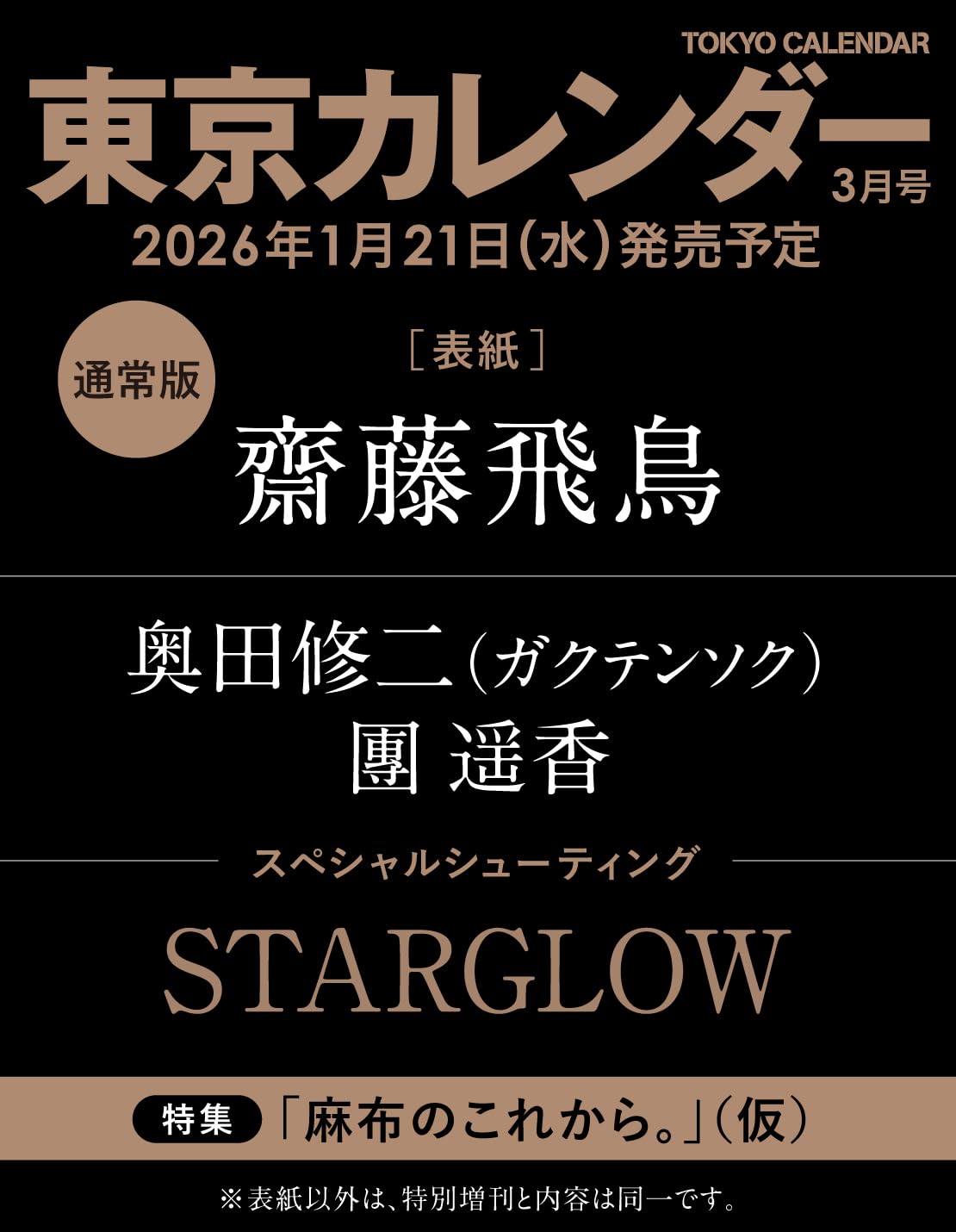 1月21日(水)発売の「東京カレンダー 2026年 3月号」通常版の表紙は齋藤飛鳥さんです。