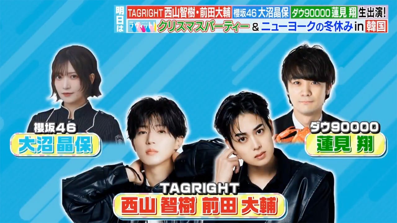 スタジオゲスト:大沼晶保(櫻坂46) / 西山智樹(TAGRIGHT) / 蓮見翔(ダウ90000) / 前田大輔(TAGRIGHT)