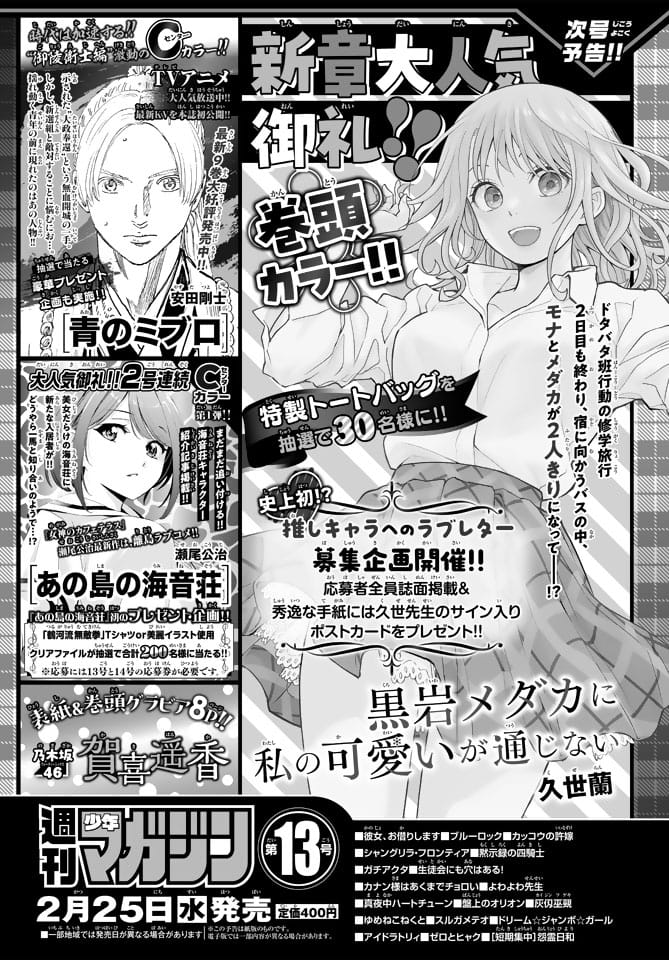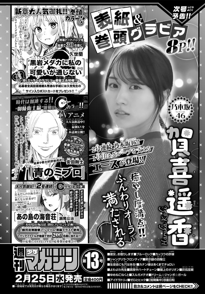 来週2月25日(水)発売の「週刊少年マガジン 2026年 No.13」の表紙&巻頭グラビアは乃木坂46 賀喜遥香さんです。