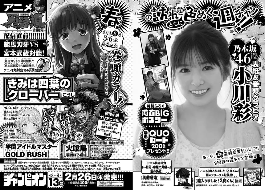 来週2月26日(木)発売の「週刊少年チャンピオン 2026年 No.13」の表紙&巻頭グラビアは乃木坂46 小川彩さんです。