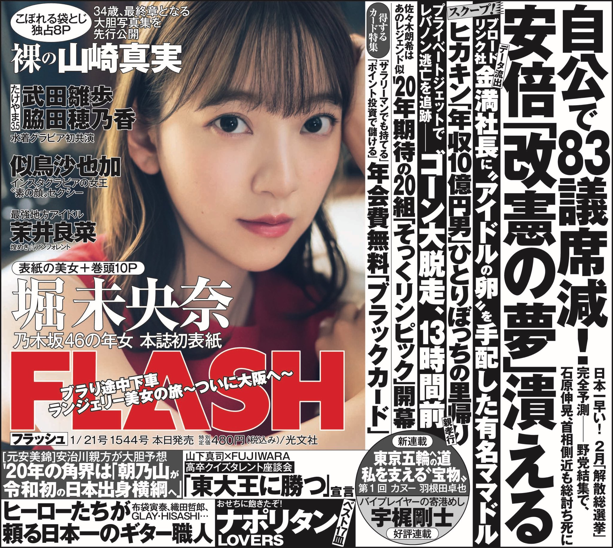 本日1月7日(火)発売の「FLASH 2020年 1/21号」の表紙&巻頭グラビアは乃木坂46 堀未央奈さんです。