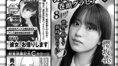 リリース 投稿のページ送り 前 1 2 3 4 5 … 167 次 日向坂46 五期生、表紙&巻頭特集!櫻坂46 浅井恋乃未も登場!「BRODY 2025年 12月号」本日10/23発売! 2025.10.23 16:10 リリースピックアップ 櫻坂46 山﨑天が表紙に登場!「ViVi 2025年 12月号」本日10/23発売! 2025.10.23 16:00 リリースピックアップ 乃木坂46 増田三莉音、表紙&巻頭グラビア!「週刊少年チャンピオン 2025年 No.48」10/30発売! 2025.10.23 5:10 リリースピックアップ 櫻坂46 村井優、表紙&巻頭グラビア!「週刊少年チャンピオン 2025年 No.47」本日10/23発売! 2025.10.23 5:00 リリースピックアップ 櫻坂46 村井優、表紙&巻頭グラビア!「週刊少年マガジン 2025年 No.48」10/29発売! 2025.10.22 20:20 リリースピックアップ 【動画】櫻坂46『四期生「First Showcase」』ダイジェスト映像【13thシングル TYPE-C・D 特典映像】 2025.10.22 19:50 動画リリース 櫻坂46 村井優が登場!「東京カレンダー 2025年 12月号」本日10/21発売! 2025.10.21 20:10 リリースピックアップ 相楽伊織、表紙&巻頭グラビア!付録DVDにも登場!「週刊FLASH 2025年 11/4号」10/21発売! 2025.10.20 20:00 リリースピックアップ 日向坂46 大野愛実、表紙&巻頭グラビア!藤嶌果歩、松尾桜も登場!ランダムシール付き!「週刊プレイボーイ 2025年 No.44」本日10/20発売! 2025.10.20 16:10 リリースピックアップ 乃木坂46 遠藤さくらが表紙に登場!「non-no 2025年 12月号」本日10/20発売! 2025.10.20 16:00 リリースピックアップ 乃木坂46 40thシングル 選抜メンバー&新ビジュアル解禁!瀬戸口心月×矢田萌華 Wセンター! 2025.10.20 11:50 リリースピックアップニュース 櫻坂46 遠藤理子×村井優、表紙&巻頭特集!櫻坂46 井上梨名、乃木坂46 大越ひなのも登場!「B.L.T. 2025年 12月号」10/28発売! 2025.10.16 16:00 リリースピックアップ 櫻坂46 村井優、表紙&巻頭グラビア!「週刊少年チャンピオン 2025年 No.47」10/23発売! 2025.10.16 14:00 リリースピックアップ 櫻坂46 谷口愛季、表紙&巻頭グラビア!「週刊少年チャンピオン 2025年 No.46」本日10/16発売! 2025.10.16 13:30 リリースピックアップ 櫻坂46 守屋麗奈、表紙&巻頭グラビア!「週刊少年サンデー 2025年 No.46」本日10/15発売! 2025.10.15 15:10 リリースピックアップ 乃木坂46 海邉朱莉、櫻坂46 浅井恋乃未、グラビア掲載!「EX大衆 2025年 11月号」本日10/15発売! 2025.10.15 15:00 リリースピックアップ 櫻坂46 村井優が登場!「東京カレンダー 2025年 12月号」10/21発売! 2025.10.14 19:00 リリースピックアップ 乃木坂46 森平麗心、初ソログラビア掲載!「アップトゥボーイ 2025年 12月号」10/23発売! 2025.10.14 17:40 リリースピックアップ 日向坂46 五期生、表紙&巻頭グラビア!「BRODY 2025年 12月号」10/23発売! 2025.10.14 15:40 リリースピックアップ 日向坂46『日向坂で会いましょう』総力特集!大野愛実ソログラビアも!「BUBKA 2025年 12月号」10/31発売! 2025.10.14 15:20 リリースピックアップ 乃木坂46 40thシングル、11/26発売決定!【予約開始】 2025.10.13 5:46 リリースピックアップニュース 櫻坂46 谷口愛季、表紙&巻頭グラビア!「週刊少年チャンピオン 2025年 No.46」10/16発売! 2025.10.11 20:30 リリースピックアップ 乃木坂46 五百城茉央 主演ドラマ「MADDER その事件、ワタシが犯人です」Blu-ray BOX、10/10発売! 2025.10.9 12:20 リリースピックアップ 櫻坂46 山川宇衣、グラビア掲載!「BOMB 2025年 11月号」10/9発売! 2025.10.8 16:40 リリース 櫻坂46 山﨑天、裏表紙&12P掲載!「BARFOUT! SPECIAL EDITION EARLY WINTER 2025 / EMOTIONAL EXPERIENCE」11/7発売! 2025.10.8 15:30 リリースピックアップ 櫻坂46 守屋麗奈、表紙&巻頭グラビア!「週刊少年サンデー 2025年 No.46」10/15発売! 2025.10.8 13:50 リリースピックアップ 中田花奈、表紙&巻頭グラビア!「週刊SPA! 2025年 10/14・21合併号」10/7発売! 2025.10.6 22:10 リリースピックアップ 投稿のページ送り 前 1 2 3 4 5 … 167 次