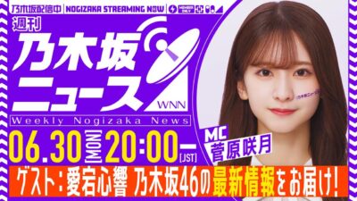 タグ:乃木坂46 投稿のページ送り 1 2 3 … 558 次 「乃木坂46 6期生稼働中」#11:台北編③【2025.12.19 12:00〜 Lemino】 2025.12.19 1:00 メディア出演 乃木坂46 岡本姫奈が生配信!【2025.12.18 20:00〜 SHOWROOM】 2025.12.18 14:30 メディア出演 乃木坂46 川﨑桜出演「全日本フィギュア直前!【サクラ座】~川﨑桜とレジェンドが贈る名演技劇場~」全日本の大逆転ドラマ【2025.12.18 24:15〜 フジテレビ】 2025.12.18 7:30 メディア出演 【動画】乃木坂46 田村真佑・矢久保美緒「生のアイドルが好き」アフタートーク【2025.11.21放送】 2025.12.17 22:30 動画 乃木坂46 賀喜遥香・筒井あやめ主演ドラマ「量産型ルカ -プラモ部員の青き逆襲-」Blu-ray&DVD BOX、本日12/17発売! 2025.12.17 16:00 リリースピックアップ 乃木坂46「のぎおび⊿」瀬戸口心月が生配信!【2025.12.17 21:00〜 SHOWROOM】 2025.12.17 9:00 メディア出演 乃木坂46 川﨑桜出演「全日本フィギュア直前!【サクラ座】~川﨑桜とレジェンドが贈る名演技劇場~」スケート大国ニッポンの受け継がれる大技【2025.12.17 24:15〜 フジテレビ】 2025.12.17 7:00 メディア出演 「猫舌SHOWROOM 乃木坂46 にゃんば〜1」一ノ瀬美空・菅原咲月が生配信!【2025.12.17 19:00〜】 2025.12.17 5:30 メディア出演 乃木坂46 岡本姫奈、22歳の誕生日 2025.12.17 0:10 イベント 乃木坂46「のぎおび⊿」弓木奈於が生配信!【2025.12.16 19:00〜 SHOWROOM】 2025.12.16 14:00 メディア出演 乃木坂46 五百城茉央 オンリーワンの輝き「40thSGアンダーライブ」で初めての座長【坂道の火曜日】 2025.12.16 13:30 その他 乃木坂46 川﨑桜出演「全日本フィギュア直前!【サクラ座】~川﨑桜とレジェンドが贈る名演技劇場~」ペア・アイスダンス特集【2025.12.16 24:15〜 フジテレビ】 2025.12.16 9:30 メディア出演 乃木坂46 池田瑛紗出演「小峠英二のなんて美だ!」テーマ:ボクシング 完結編【2025.12.16 24:00〜 TOKYO MX】 2025.12.16 9:00 メディア出演 日向坂46 正源司陽子、表紙&巻頭グラビア!「EX大衆 2026年 1・2月 合併号」本日12/15発売! 2025.12.15 14:30 リリースピックアップ 乃木坂46 川﨑桜出演「全日本フィギュア直前!【サクラ座】~川﨑桜とレジェンドが贈る名演技劇場~」最後の全日本フィギュアに挑む選手たち【2025.12.15 24:15〜 フジテレビ】 2025.12.15 9:30 メディア出演 乃木坂46 菅原咲月MC「週刊乃木坂ニュース」生配信!【2025.12.15 20:00〜 YouTube】 2025.12.15 7:30 メディア出演 乃木坂46「のぎおび⊿」矢久保美緒が生配信!【2025.12.15 18:30〜 SHOWROOM】 2025.12.15 7:00 メディア出演 乃木坂46「のぎ鍋」第七話:梅澤美波 × ???【2025.12.14 24:45〜 テレビ東京】 2025.12.14 8:30 メディア出演 「乃木坂工事中」#544:地元おやつ しょっぱ部門!!お菓子の概念を覆す!?【2025.12.14 24:15〜 テレビ東京】 2025.12.14 8:00 メディア出演 乃木坂46「のぎおび⊿」森平麗心が生配信!【2025.12.12 19:00〜 SHOWROOM】 2025.12.12 12:00 メディア出演 「乃木坂46 6期生稼働中」#10:台北編②【2025.12.12 12:00〜 Lemino】 2025.12.12 2:00 メディア出演 乃木坂46「のぎおび⊿」大越ひなのが生配信!【2025.12.11 19:00〜 SHOWROOM】 2025.12.11 5:30 メディア出演 乃木坂46 梅澤美波 2nd写真集「透明な覚悟」タイトル&表紙4タイプ解禁! 2025.12.10 13:20 リリースピックアップ 乃木坂46「のぎおび⊿」川端晃菜が生配信!【2025.12.10 18:15〜 SHOWROOM】 2025.12.10 10:00 メディア出演 「猫舌SHOWROOM 乃木坂46 にゃんば〜1」瀬戸口心月・長嶋凛桜が生配信!【2025.12.10 19:00〜】 2025.12.10 2:00 メディア出演 乃木坂46 矢田萌華、表紙&巻頭グラビア!裏表紙は小川彩!「BOMB 2026年 1月号」本日12/9発売! 2025.12.9 22:30 リリースピックアップ 乃木坂46「のぎおび⊿」増田三莉音が生配信!【2025.12.9 19:00〜 SHOWROOM】 2025.12.9 11:57 メディア出演 投稿のページ送り 1 2 3 … 558 次